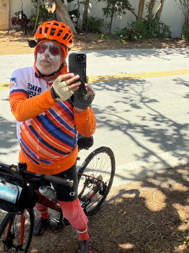 I awake and am ready to leave at 6:45. As the sun rises over the ocean I move South at a steady speed. I pull into the first rest stop 5 minutes ahead of the speedsters but leave soon after. No one sees me again until the end… I arrive 40 minutes ahead of them to get the yellow jersey. In fairness to them they are tired , achy, and concerned about saddle sores with little winter training. I worked hard to prevent these three but then I am a proactive turtle at heart.